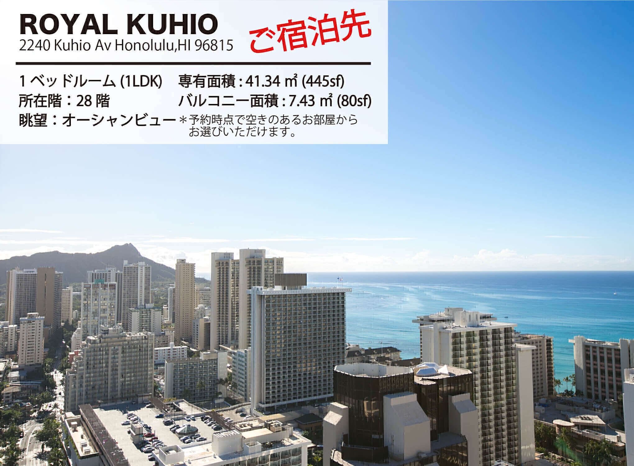 コンドミニアム「ロイヤルクヒオ」の宿泊券、宿泊割引40%〜90%オフ