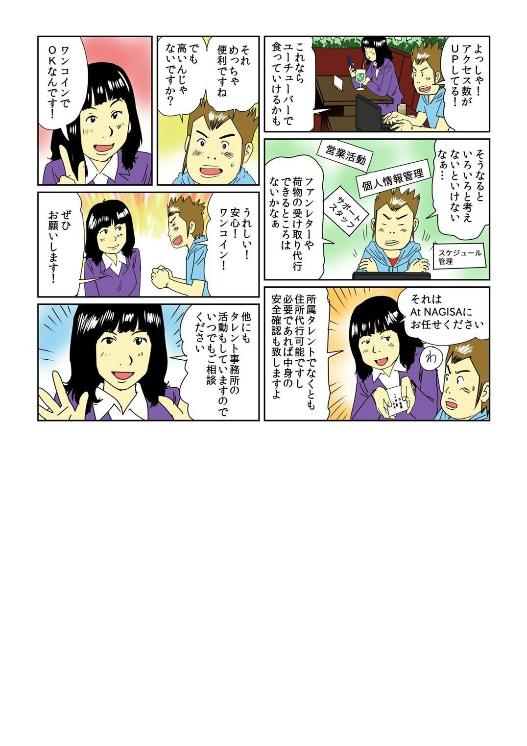漫画化以降にAt NAGISAが改めて作成する住所代行サービスの宣伝動画に当プランを選択頂いた方のお名前をクレジット記載させて頂きます。