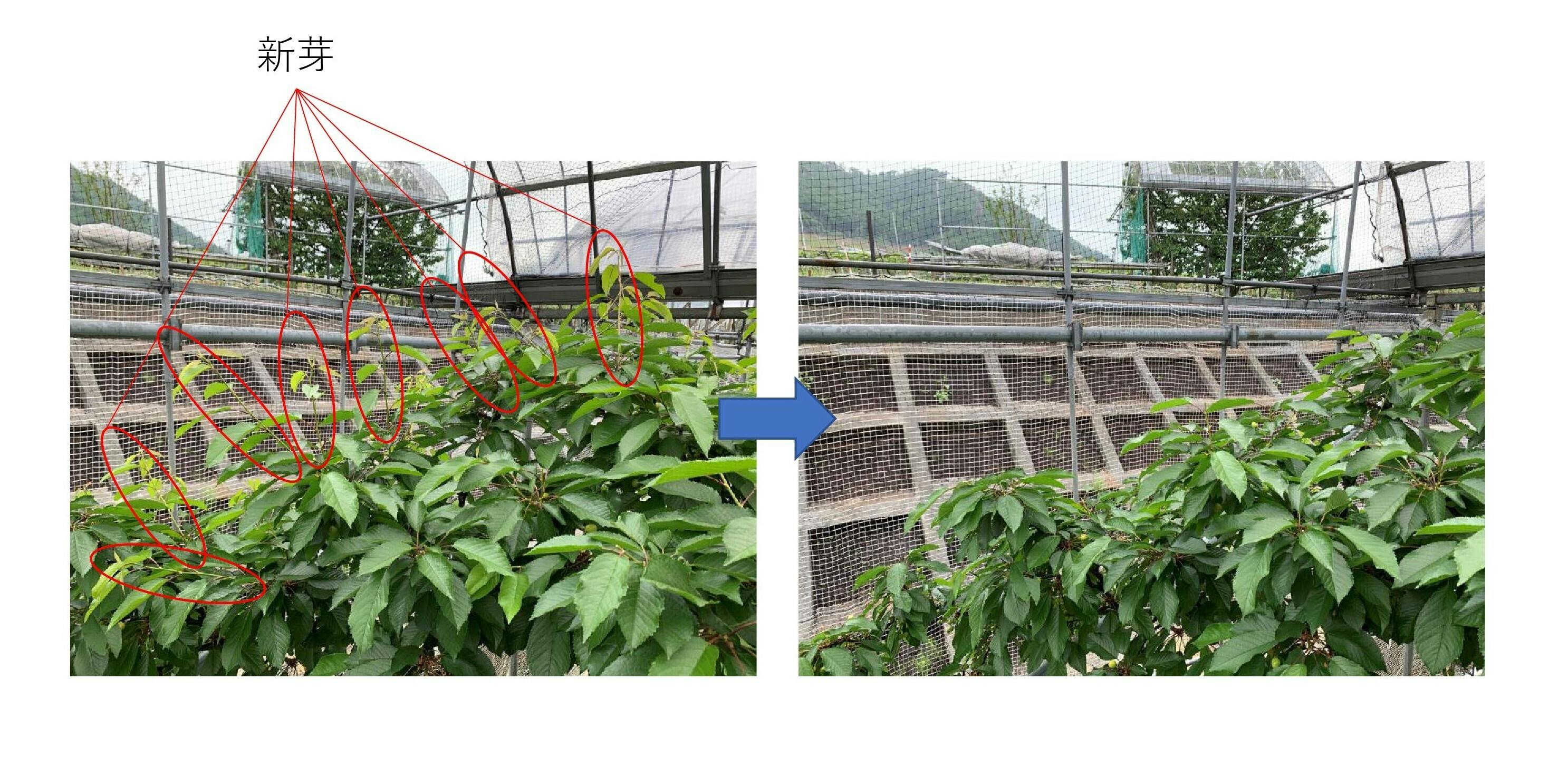 さくらんぼはこの時期に多くの新芽を出します。