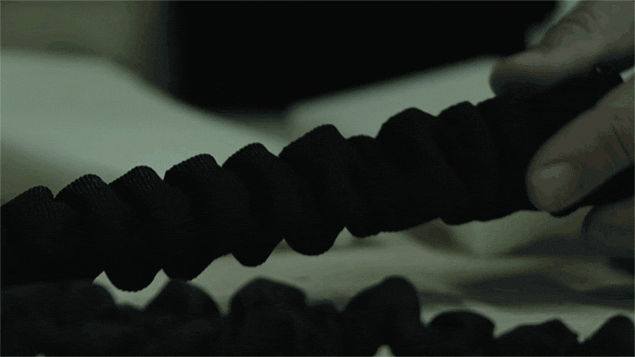歩くたびに体の動きに合わせて伸縮。こんなに伸びる!
