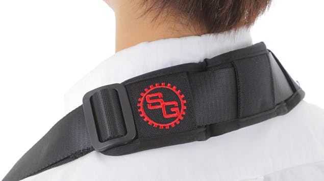 伸び縮みするから斜め掛けできる。バッグのように体にフィットして負担も軽減