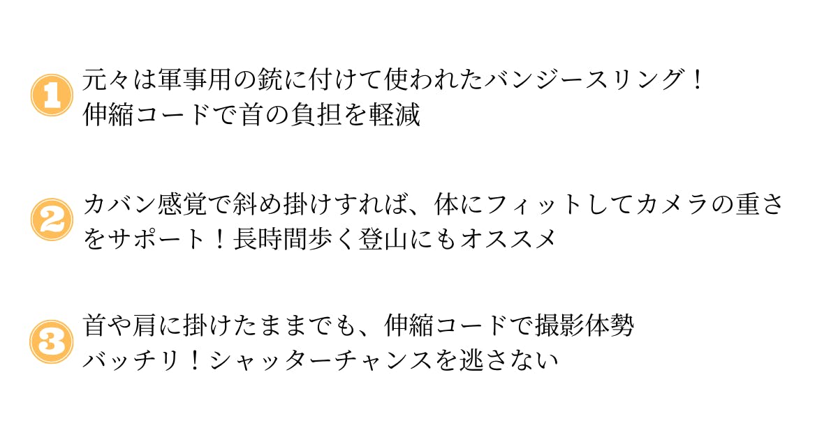 元々は軍隊で銃を下げるために使っていたバンジーコードをカメラに応用!