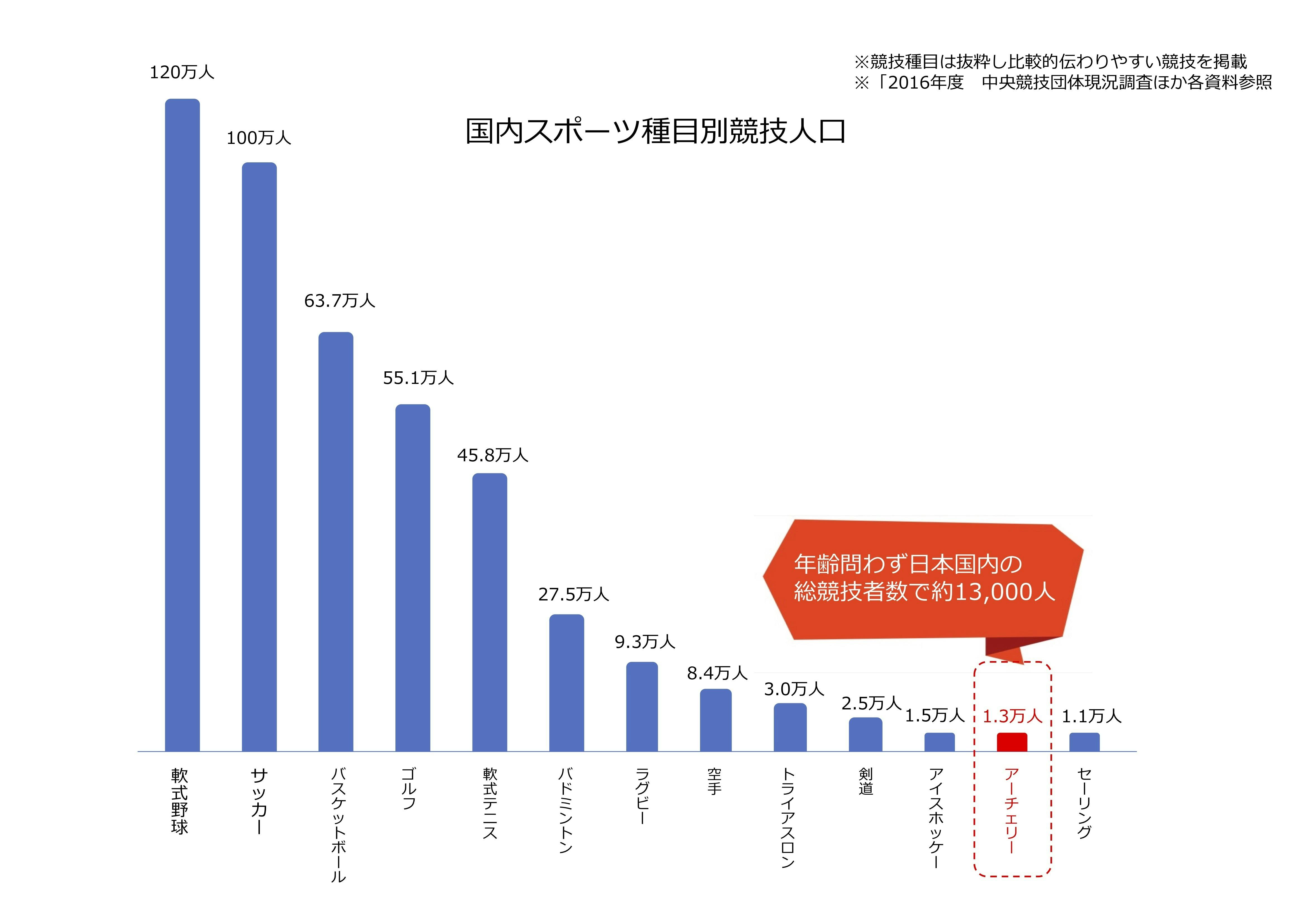 アーチェリー人口は国内で1万人3千人ほどのスポーツです。