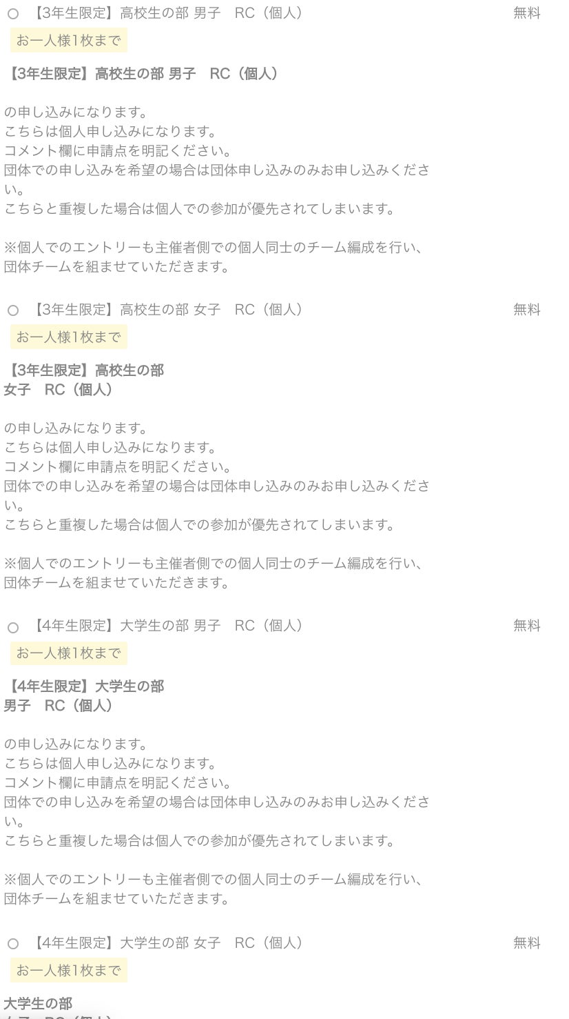 そして、大会主旨から高校、大学の最高学年の方々を優先する意味でもb熱枠でのお申し込み、抽選を行わせていただきます。