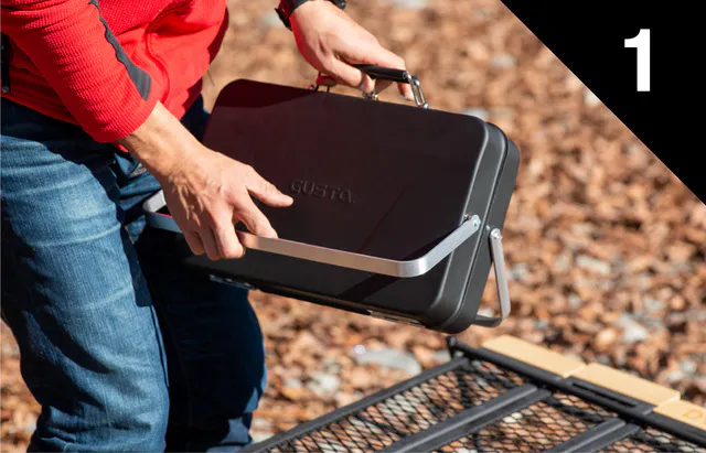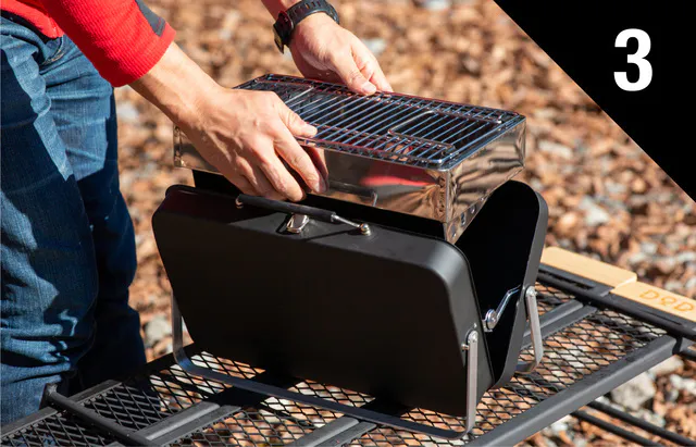 手軽さ、使い勝手の良さを追求した「Suitcase BBQ」は、3ステップの簡単組み立てが可能です。