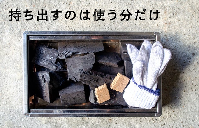 あらかじめ、使う量の炭と着火剤だけをケースに内蔵して持ち運べば、さらに荷物を減らせます! バイクや自転車ツーリングでも負担になりません。