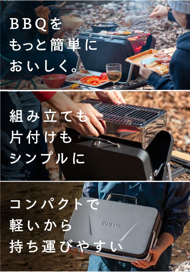 今回の「Suitcase BBQ」を初めて見た時にも、そのデザイン性の高さや、GUSTA商品が持つ雰囲気に触れて、直ぐに「格好いいな」と感じました。先ずはこの「Suitcase BBQ」を通じて、皆さまに手軽で楽しいBBQを体験頂ければと願っております。