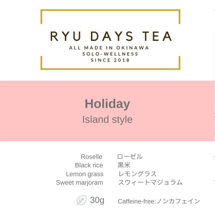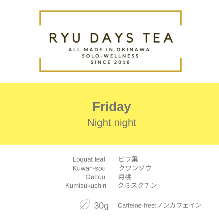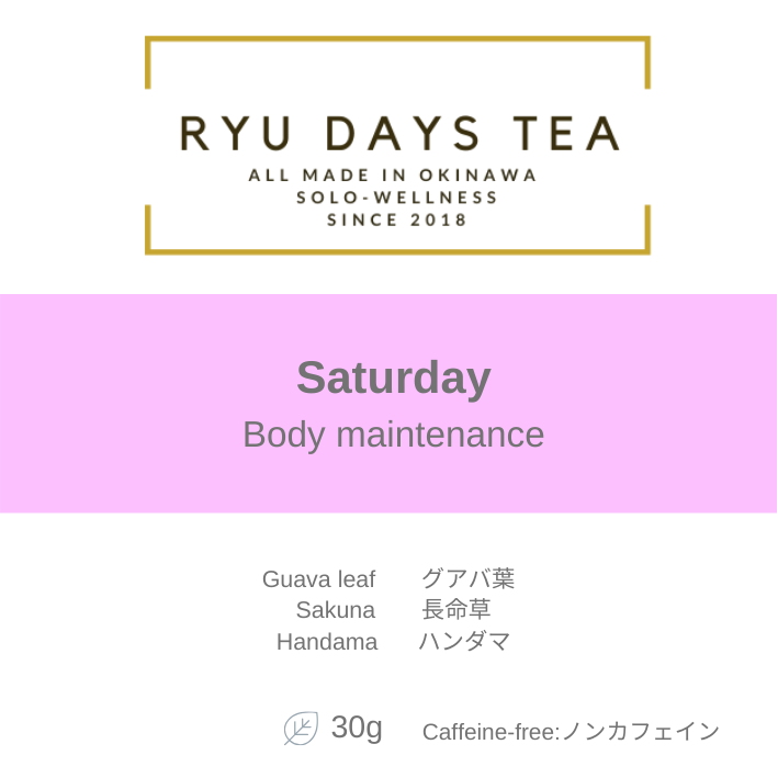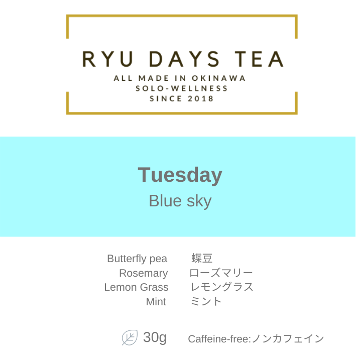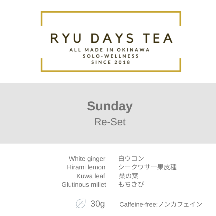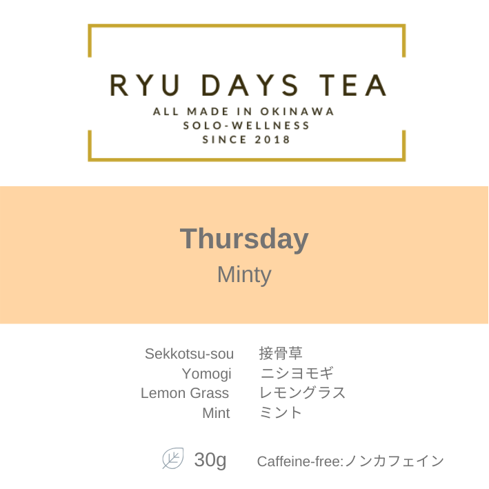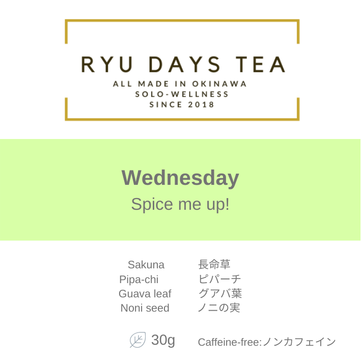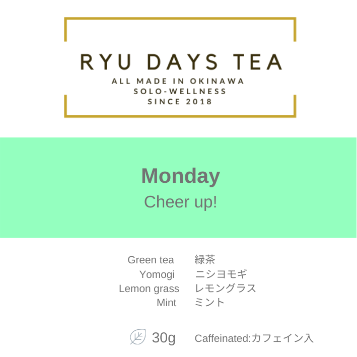 [毎日の生活]とは、月曜日~日曜日を意味し、私たちのRYU DAYS TEAは名前の通り、DAYS とあるように、曜日別に琉球茶をブレンドしています。また曜日別にテーマを設けているところも魅力です。