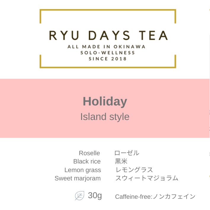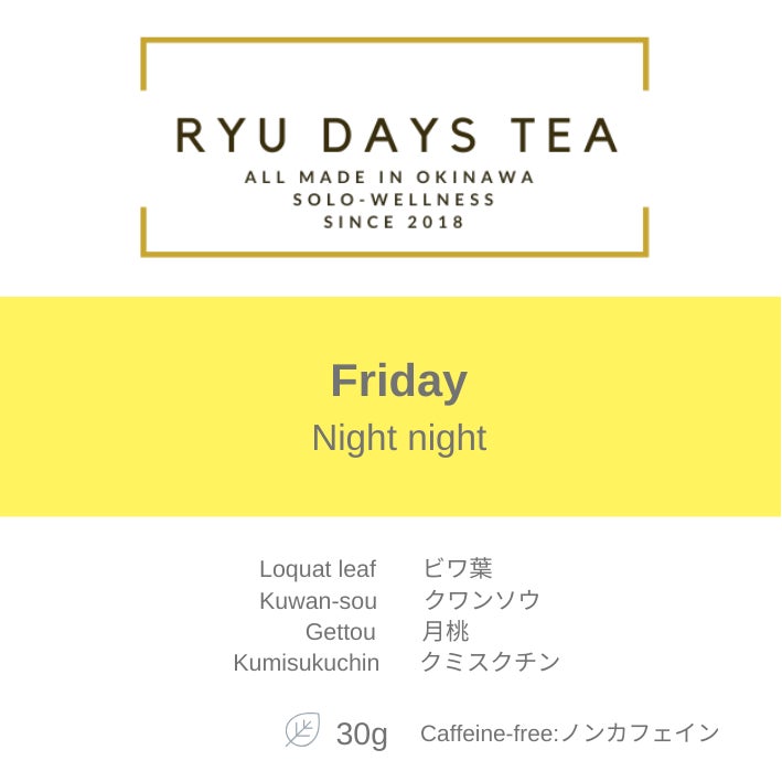 [毎日の生活]とは、月曜日~日曜日を意味し、私たちのRYU DAYS TEAは名前の通り、DAYS とあるように、曜日別に琉球茶をブレンドしています。また曜日別にテーマを設けているところも魅力です。