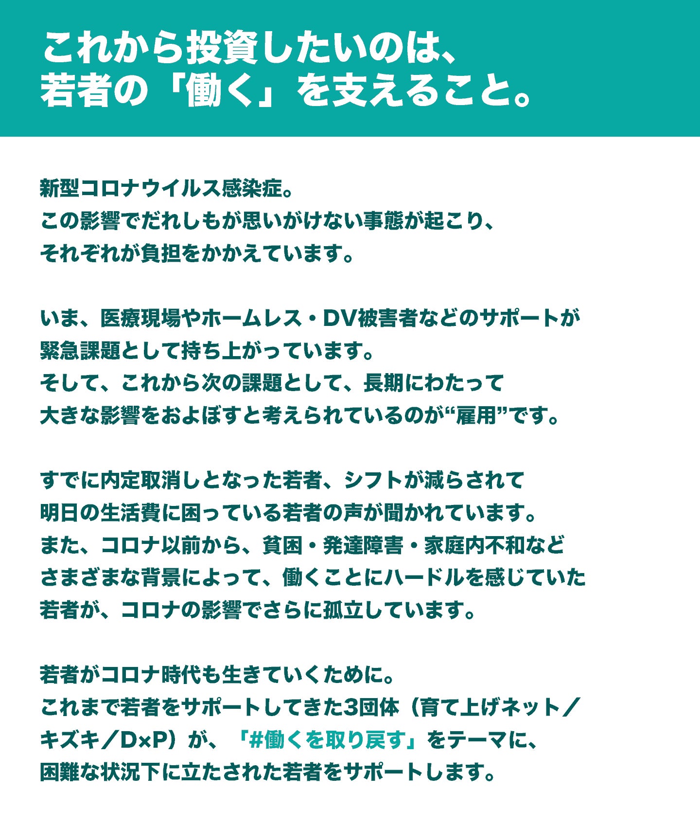 そして、ひとつの団体ではなく、3つの団体が手を結び、若者の『 #働くを取り戻す 』 活動をすることで一致しました。