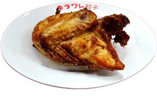 また、お店で2番目のウリである「名物かぶと揚げ」。宇都宮出身店主の秘伝のレシピで、鶏の半身を豪快に揚げたかぶと揚げは絶品でぜひ一度食べていただきたい一品!皮はパリッと香ばしく、身はふわっと柔らかく、こちらも餃子に負けずにヤミツキになる美味しさです。