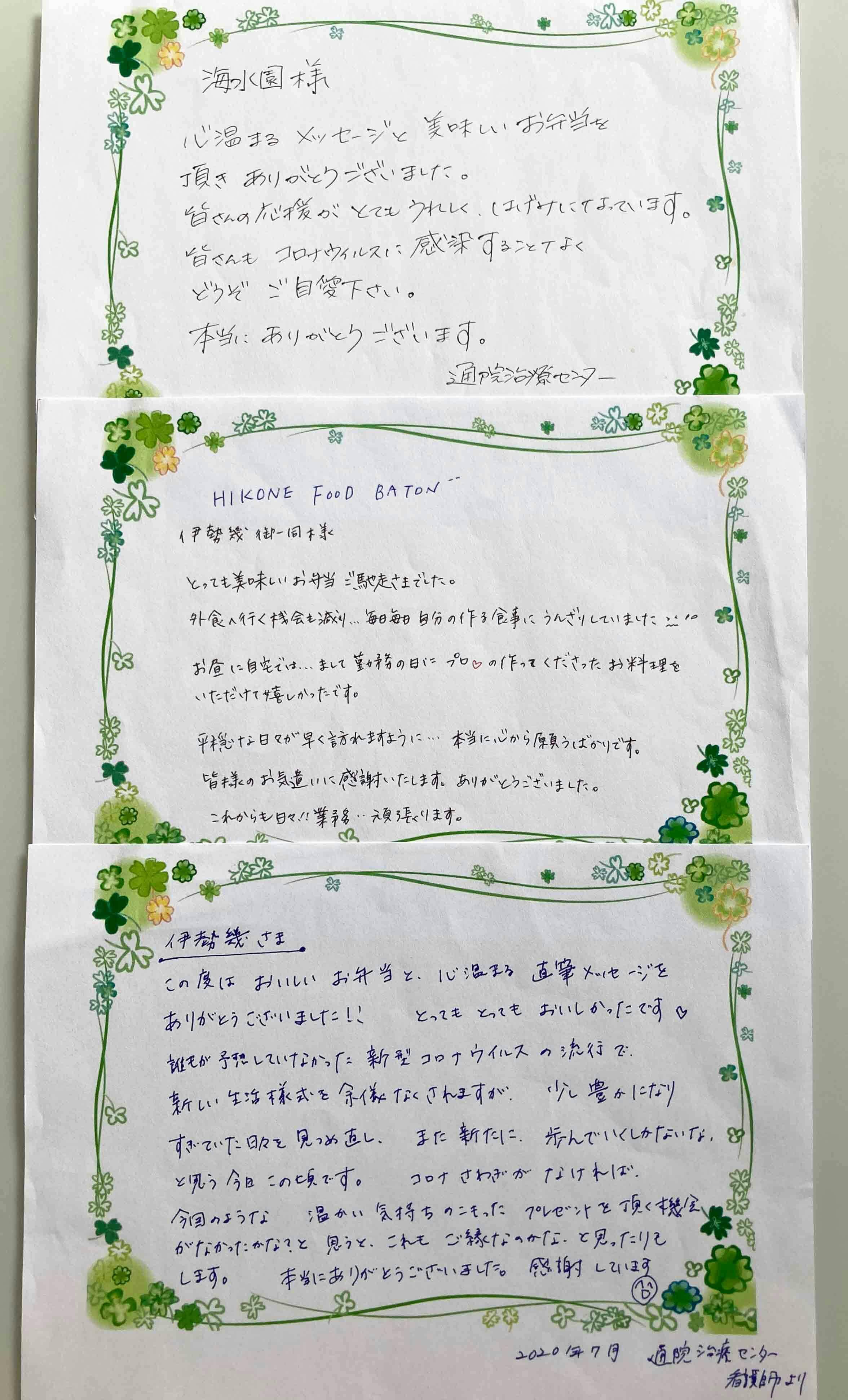 最終回7/10提供のフードバトンへ医療従事者よりお礼のメッセージをいただきました。