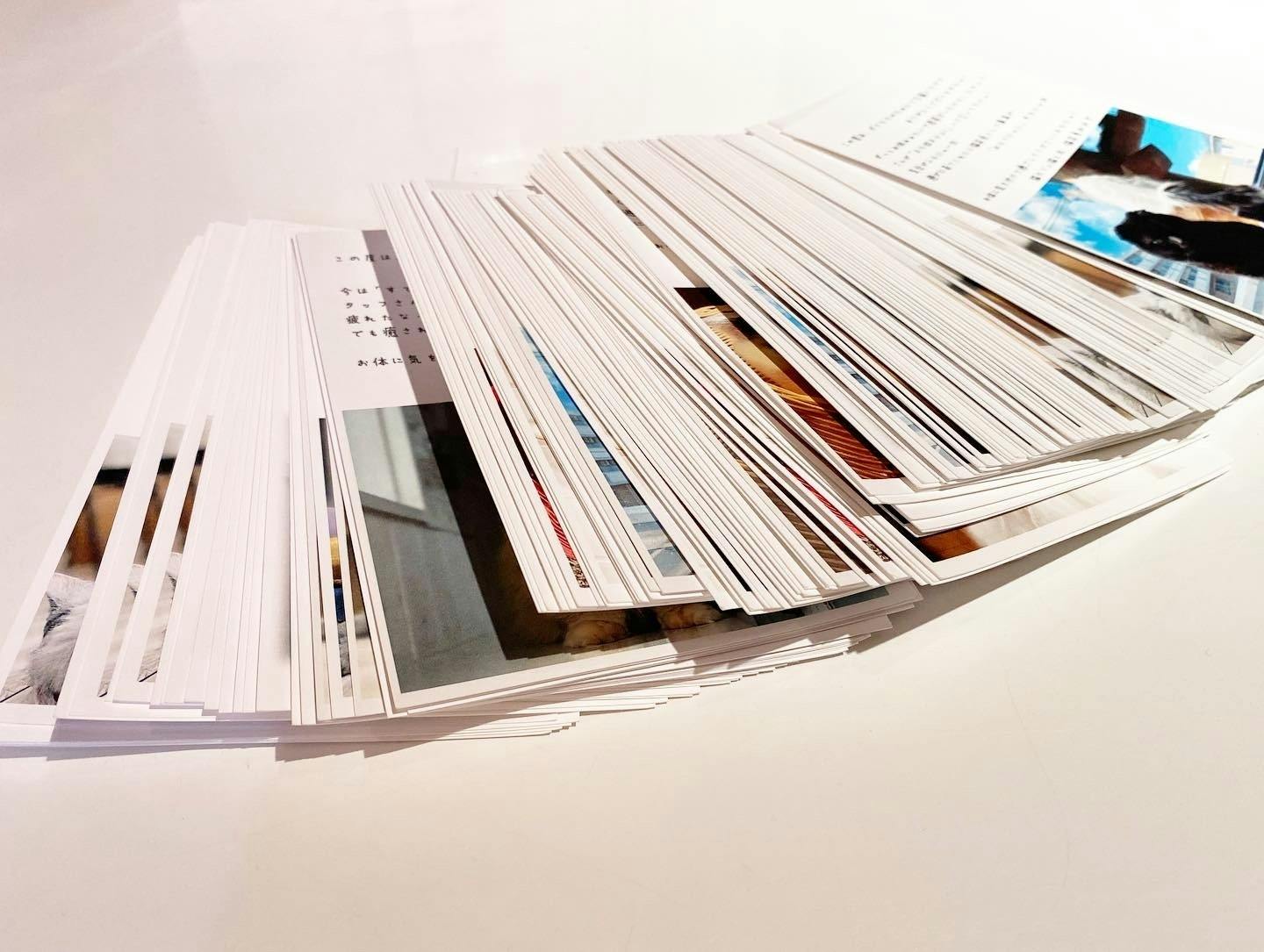 少しでも感謝の気持ちを伝えるべく、宛先など1枚1枚手書きにさせていただいております。お日にちいただいてしまいましたが来週中には発送が完了する予定です。
