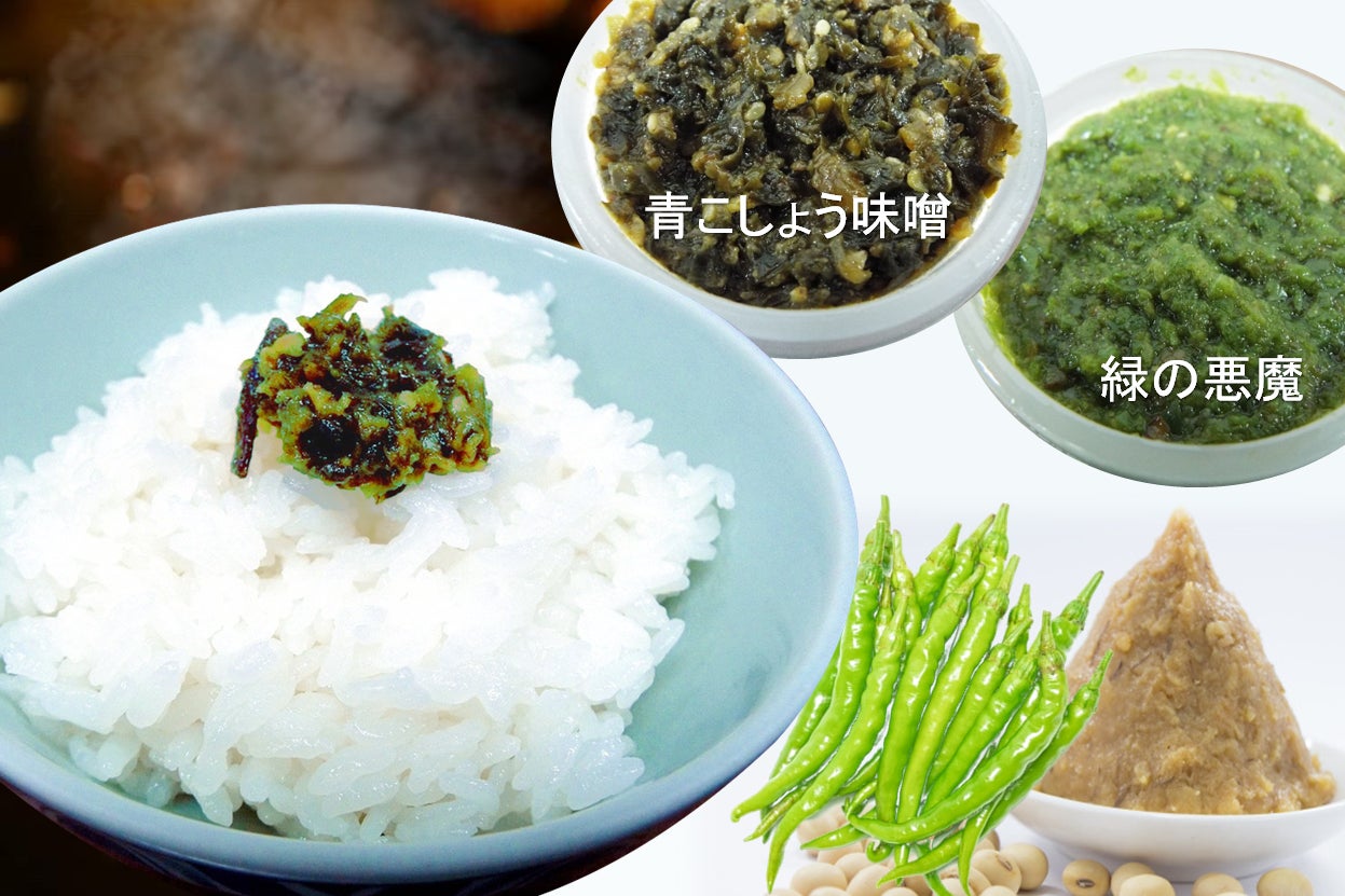 青こしょう(とうがらし)をたっぷり入れ、味わい深く調味された万能みその「うまかぁー!青こしょう味噌」