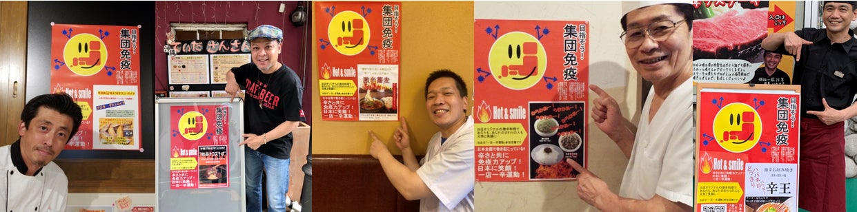 一店一辛運動は「HOT&SMAIL」を合言葉に、激辛料理と共にコロナ禍が少しでも終息に向かえばと、知り合いの飲食店経営者仲間に声をかけ、南は沖縄から北は秋田の飲食店の経営者仲間の8名が立ち上がりスタートしました。