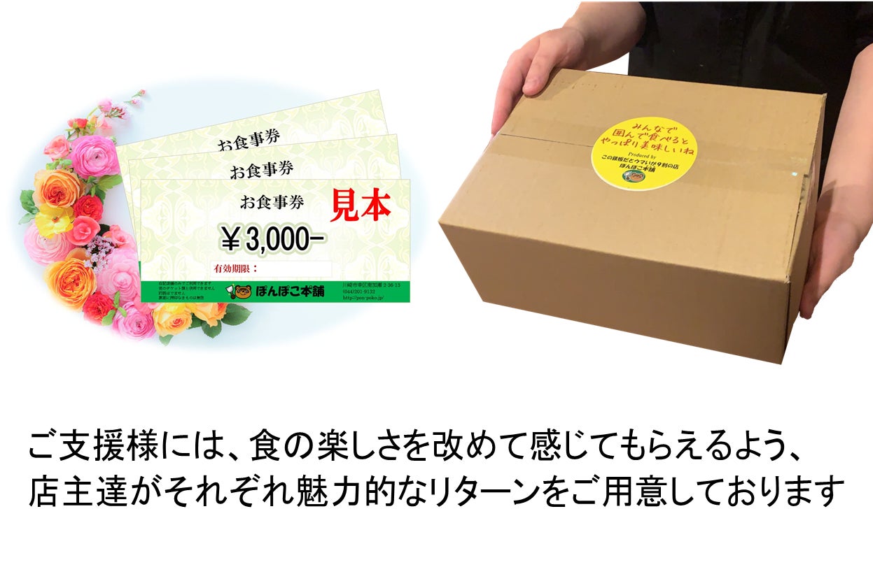 今回、中心メンバーのお店でご利用いただける食事券やグッズ、料理のお届けを通し、食の楽しさを改めて感じてください。