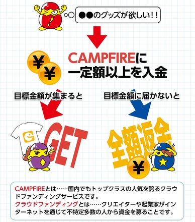 今回のグッズ化企画はクラウドファンディング形式をとっております。ご支援金額が5/28(日)までに目標金額まで達成した場合、制作決定&商品をお届けします!未達成の場合は全額返金となっております。 ご支援について詳細はこちらをご確認くださいませ!