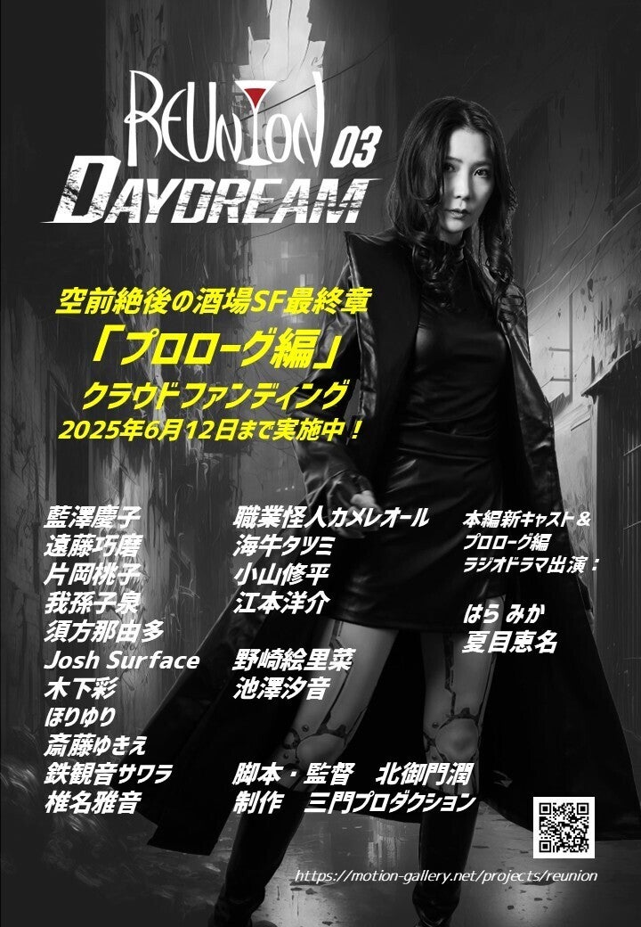 ご支援156%突破!2020年に始動したインディーズSF三部作、5年の時を経てついに最終章へ。酒場SF映画「REUNION:03 -DAYDREAM-」プロローグ編クラファンはMotion Galleryで今夜23:59まで!詳しくは↓https://motion-gallery.net/projects/reunion