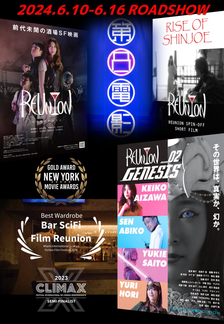 あらゆる時代につながる異次元の酒場「REUNION(リユニオン)」を舞台に繰り広げられるSFヒューマンドラマ! 2021年の第1作とスピンオフ、そして2023年公開の続編まで一挙上映!豪華キャスト舞台挨拶と参加アーティストのミニライブもあります(詳細は特設サイト参照)。