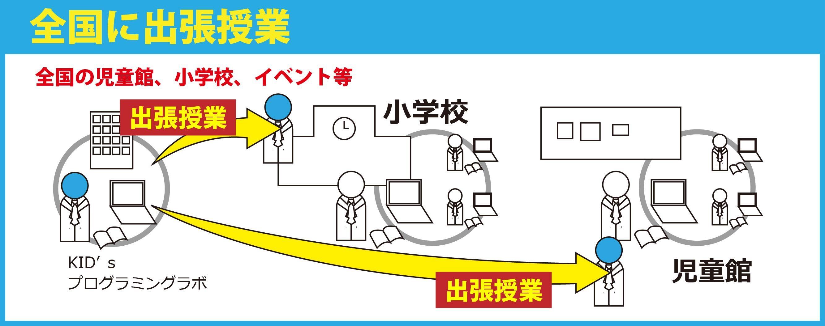Kid'sプログラミングラボのスタッフが、「小学校」や「児童館」等ご要望箇所へ出張し、子どもたちへプログラミングでゲームを作りながら楽しくプログラミングを学びます。機材につきましては、現地の機材を使用することを想定しております。 (パソコン:出張時最大10台まで貸出可能)