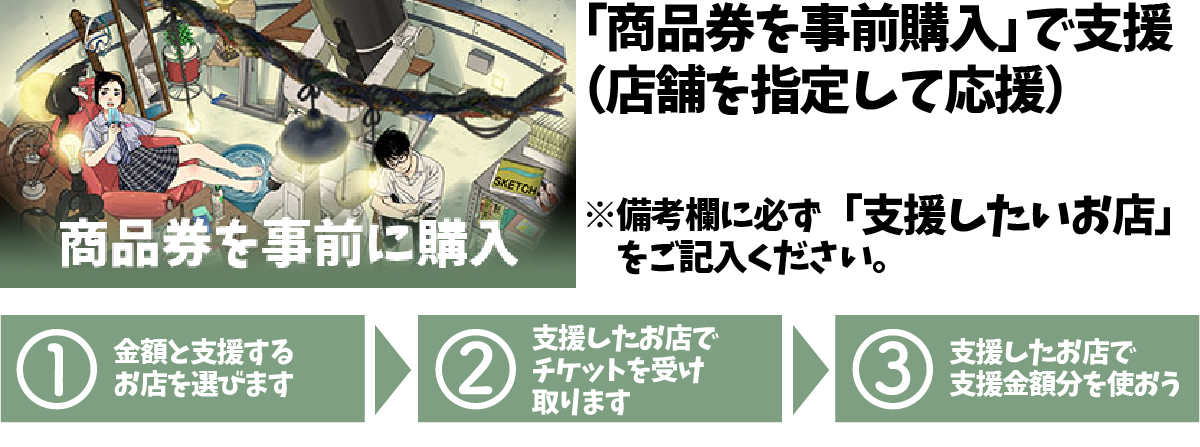 1.「商品券を事前に購入」で支援(店舗を指定して応援)