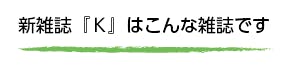 わたしたちKnit-Kの「Knit」は文字通り「編む」ことを意味しています。「K」にはおもな活動の場である「京都・関西」のほか、「価値」「考え」「記憶」「気持」「暮らし」「継承」「交流」などの意味がふくまれています。『K』は、そんな私たちの考えを集約した雑誌です。国籍や世代、性別などの立場の違い、理系や文系という分野の違いなどといったさまざまな垣根をこえた、多様な情報を発信します。雑誌『K』の発刊が、情報に翻弄されない、より安心できる社会への糸口になればと考えています。