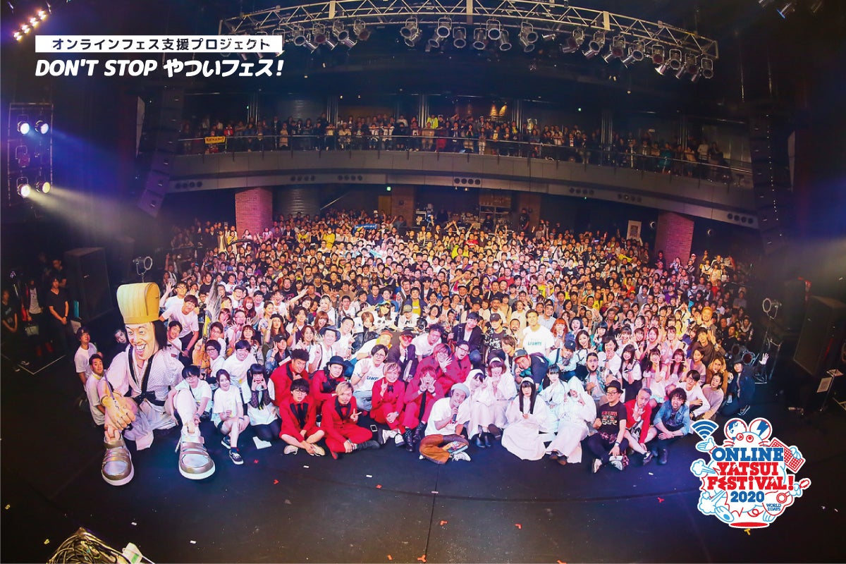 そんな状況下でも「やついフェス」を継続したい一心で、スタッフ一同協議を重ね、「ONLINE YATSUI FESTIVAL! 2020」を開催する事を決定致しました。