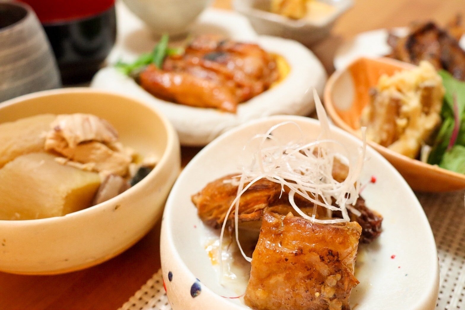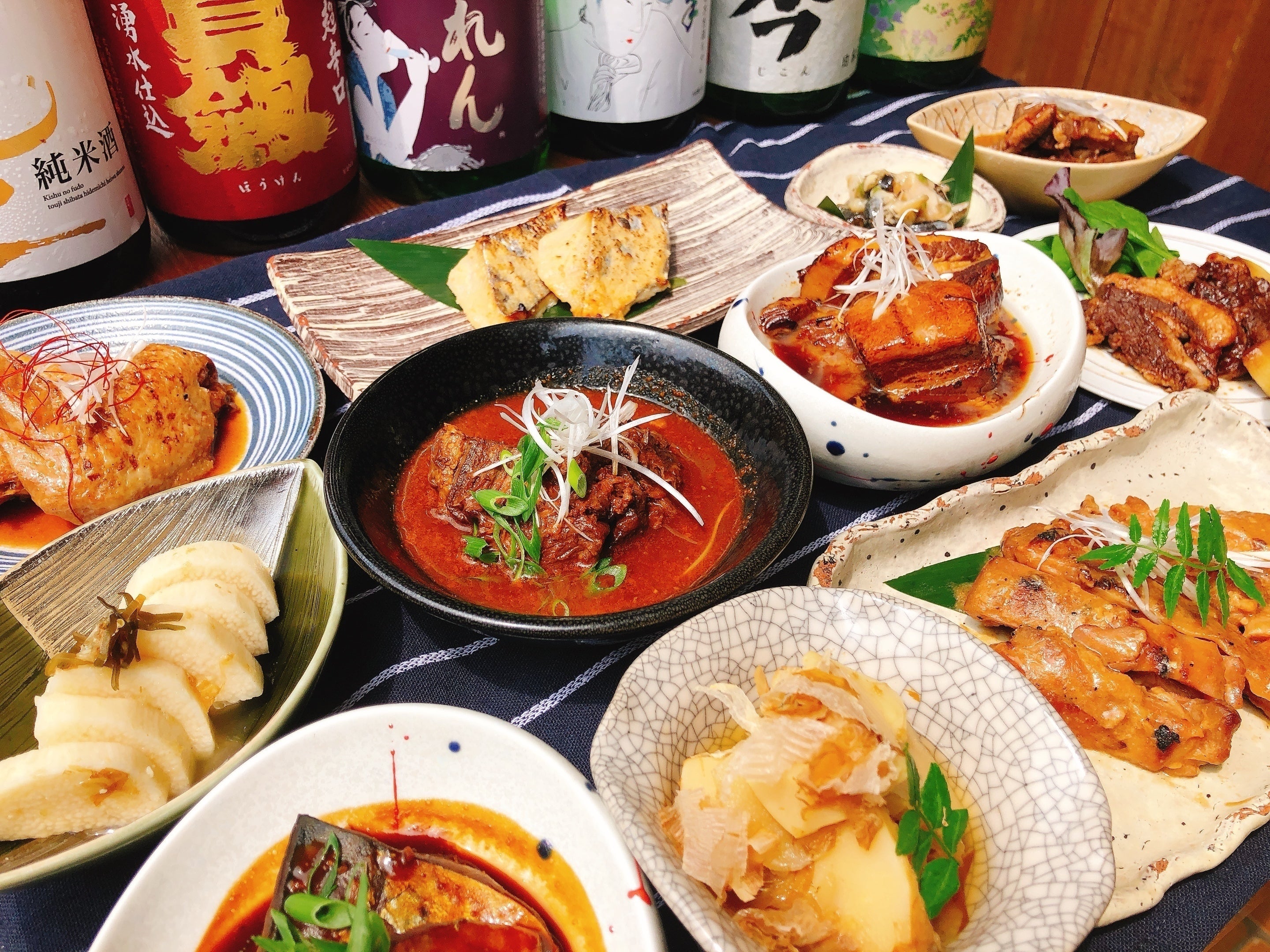 お届けする料理は大阪の居酒屋店舗でも大人気の品ばかり。お店の味をそのまま再現した、丹波あじわい鶏の西京焼、京都ポークの豚の角煮など全13品をラインナップ