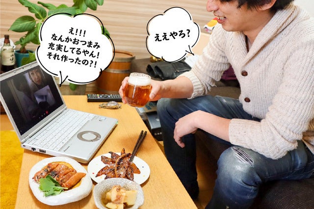 ▼オンライン飲み会で仲間の顔を見たら、お家時間もぐっと楽しい時間に!