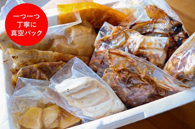 商品は大量調理された総菜や冷凍品とは違い、調理した料理を1つずつ真空パックして冷蔵でお届けします。