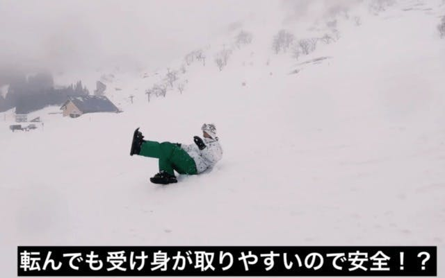 スキーやスノーボードに比べ、板が大きくないので転んでも足が巻き込まれることもなく、受け身が取りやすく安全。その上コントロールしやすいので初心者でも比較的すぐに滑れる様になります。