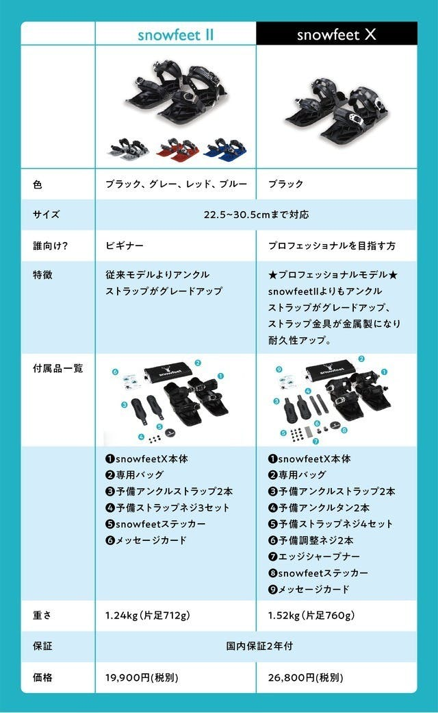 気軽に楽しみたい方はsnowfeerⅡがオススメ。本気でsnowfeetをやりたい方はプロ仕様のsnowfeetXがオススメです!