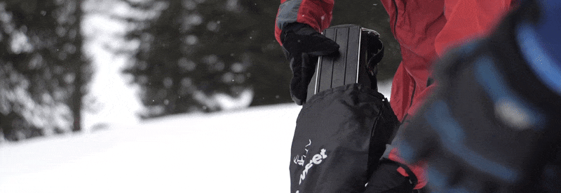 スノーフィートは非常に軽くて小さいので、バッグに入れれば簡単に持ち運びができます。気軽にスキー場に行くことはもちろん、雪山登山でも大活躍!