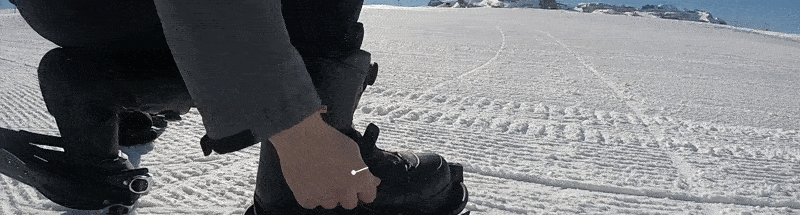 スノーフィートはビンディング形式なので、簡単にブーツに取り付けができます。