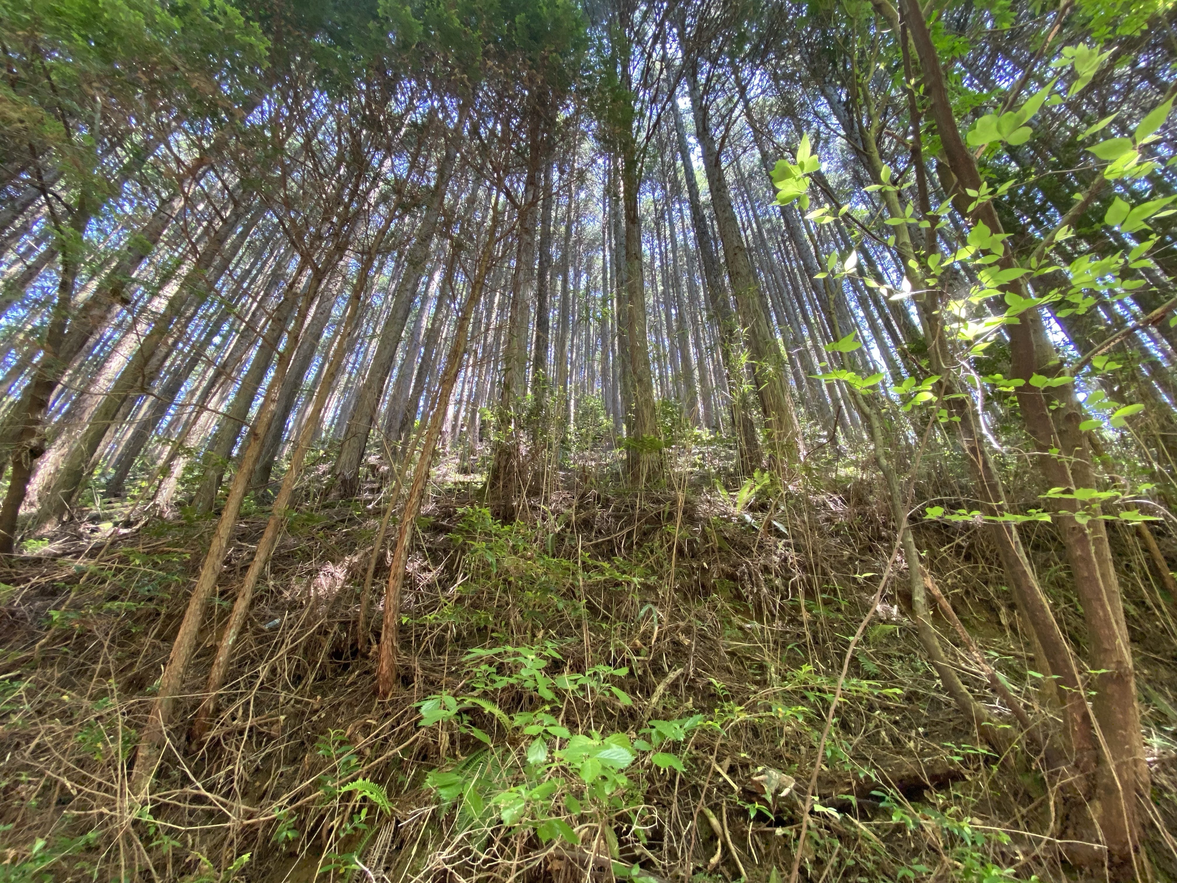 間伐とは、樹木の密度が増え過ぎないように間隔を調整すること。