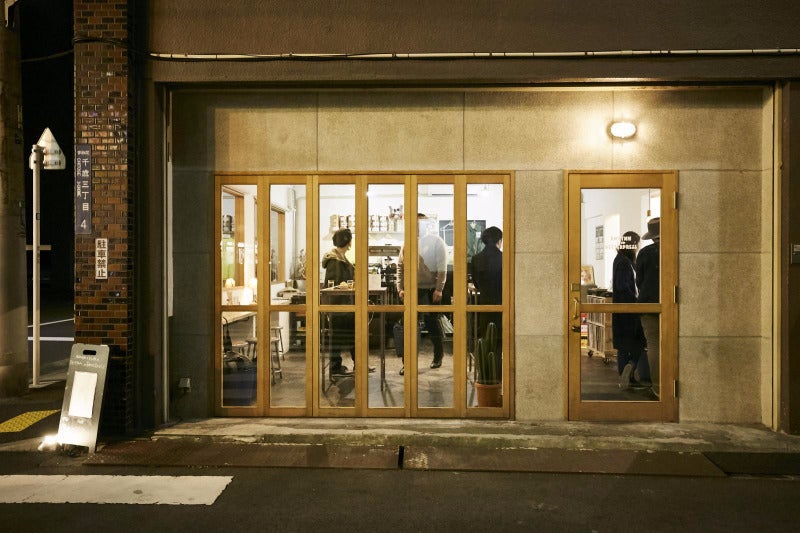 ↑Rhythm and Betterpressの外観。駅近の1階にある大きな窓が特徴の店舗で、