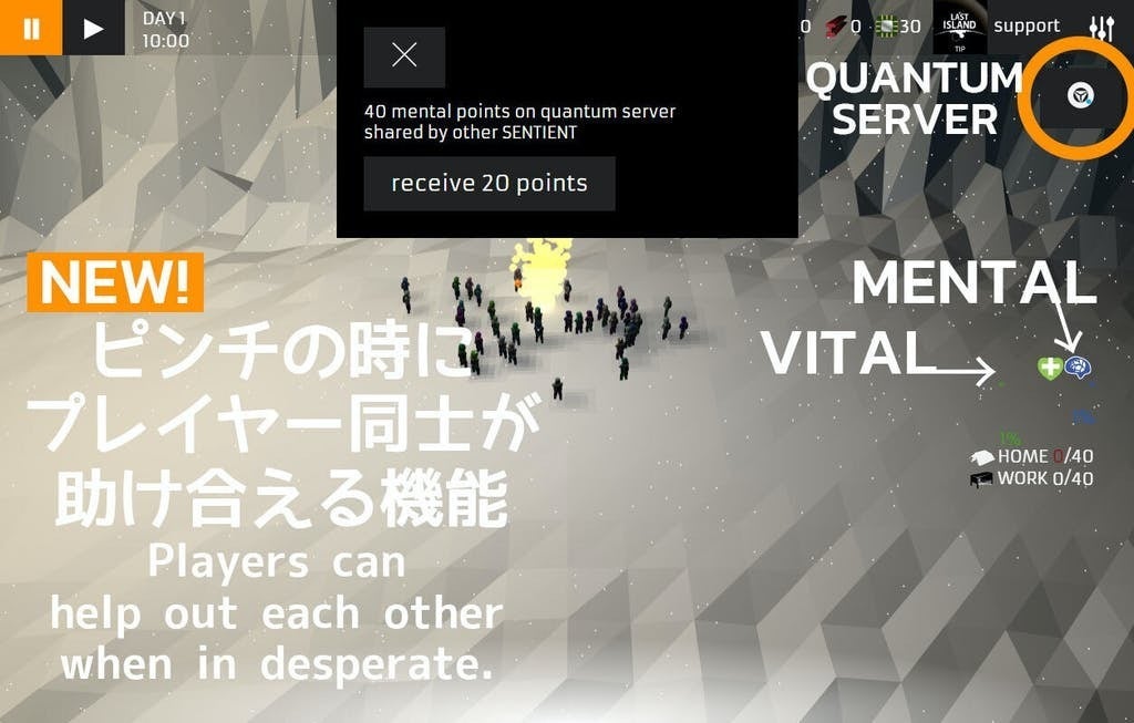 さらに、集団としてのサバイバルとして、他プレイヤーとのメンタルポイントのやりとり機能も追加。