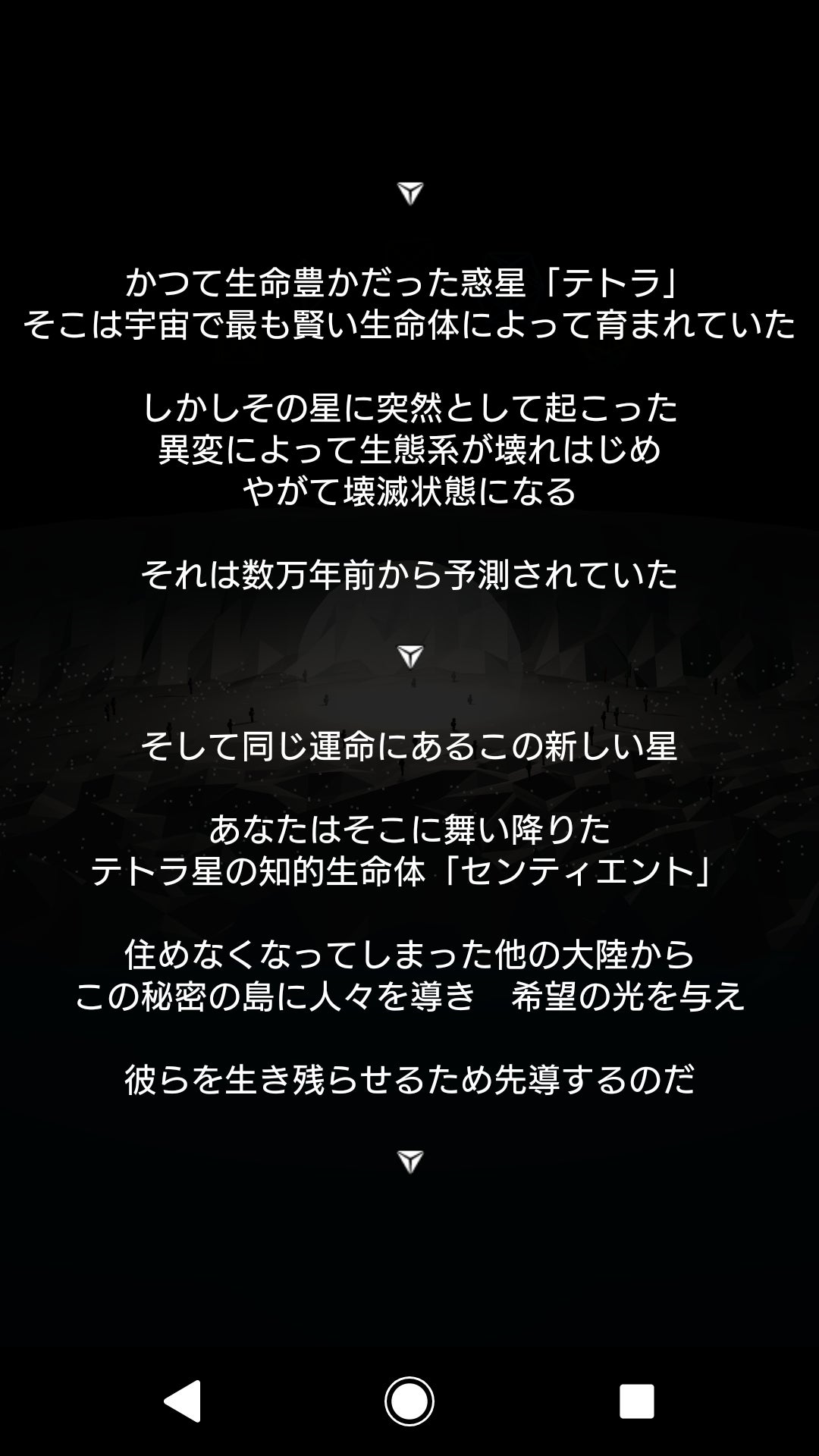 あなたは、人間の集団サバイバルを支援する、他の星からやってきた知的生命体。姿はありませんが、宇宙を構成している5つしかない正多面体プラトニック・ソリッドの集合体という概念的な存在。