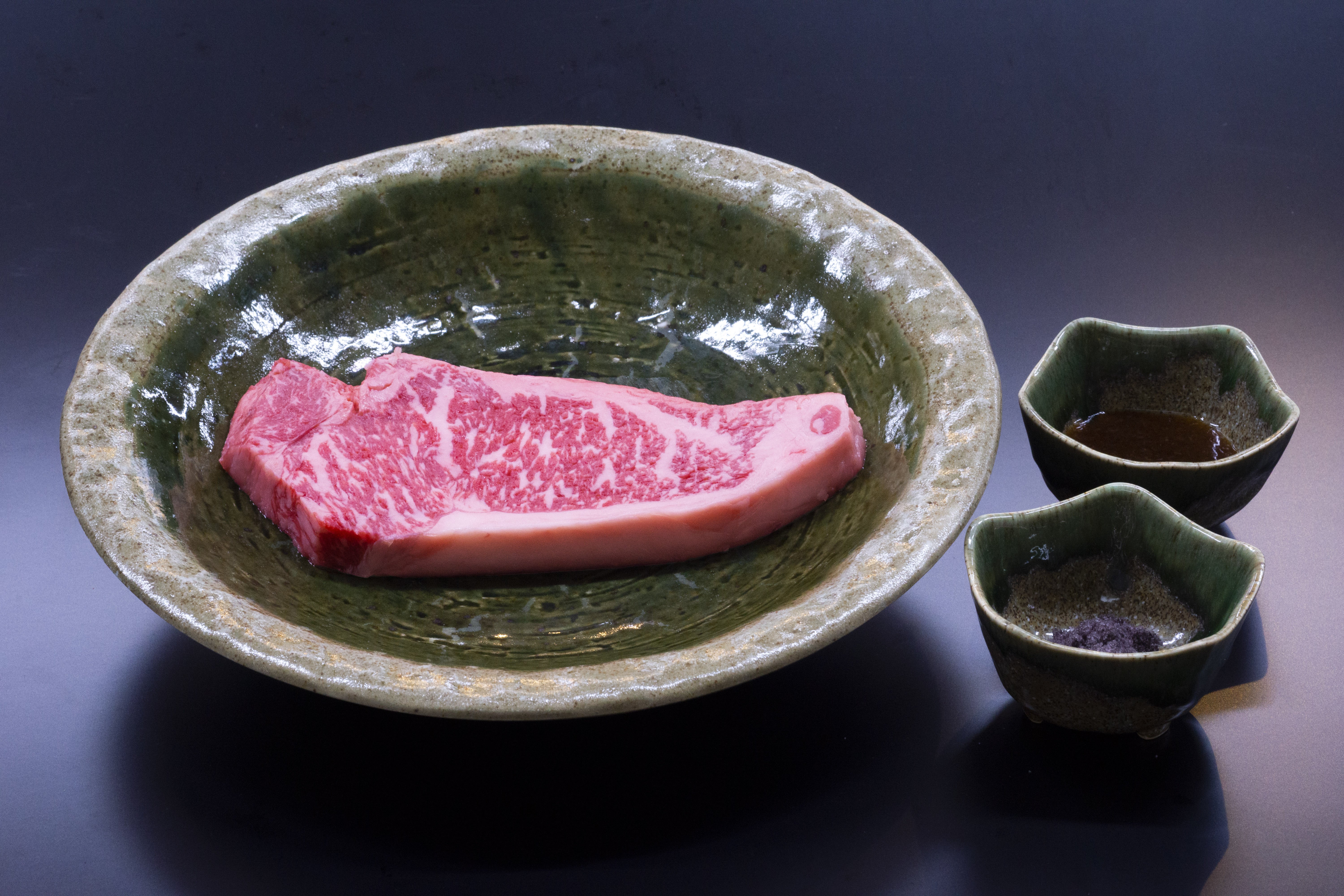 赤城牛厚切りサーロイン150g×2、自家製ステーキソース、牛脂のセットです。