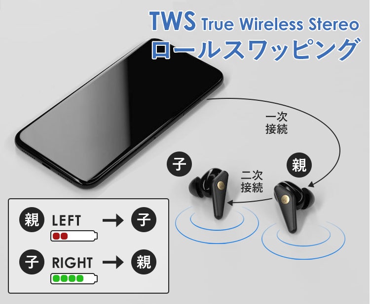 しかし、「TRACK Air+ SE」にはロールスワッピングを搭載。左右イヤホンのバッテリー残量により、親・子を自動で切り替えてバッテリーの片減りを軽減します。