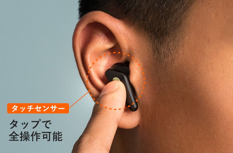 イヤホンに触れた時の誤作動を防止するため、シングルタップでは反応しません。ダブルタップ、もしくはトリプルタップで、音楽の再生や受話、曲送りやノイキャンモード切り替えなど、全ての操作が可能です。