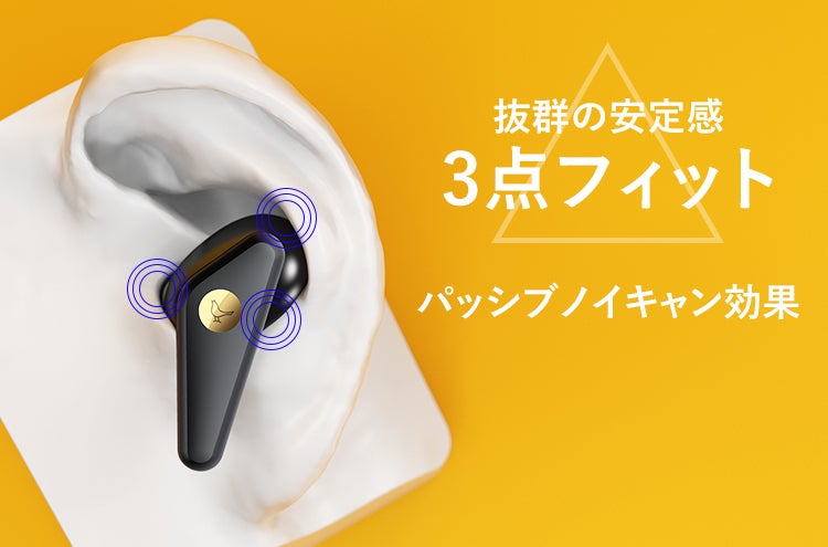 従来の完全ワイヤレスイヤホンと比べ、さらに小さく、シャープに仕上がったコンパクトボディもポイントです。すっきりしたフォルムで耳元すっきり!就寝前に音楽を楽しんでいて、そのまま眠ってしまった…そんな時でも、違和感が少なく、眠りを妨げません。