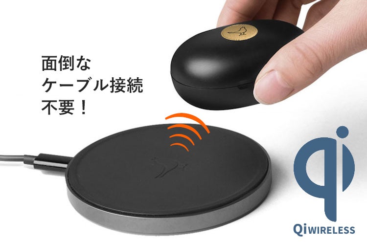 充電ケースは、ワイヤレス充電が可能です!USB Type-Cポートにケーブルを接続する手間なくスマートな充電が可能。専用充電器は別売りになりますが、市販されているQi規格のワイヤレス充電器と互換性が有ります。