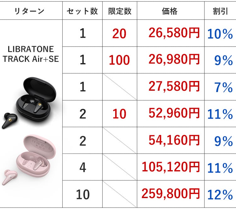 国内大手クラウドファンディングにて1千万円以上の支援を集め、大成功を収めたLIBRATONE社製・完全ワイヤレスイヤホン「TRACK Air+SE」。