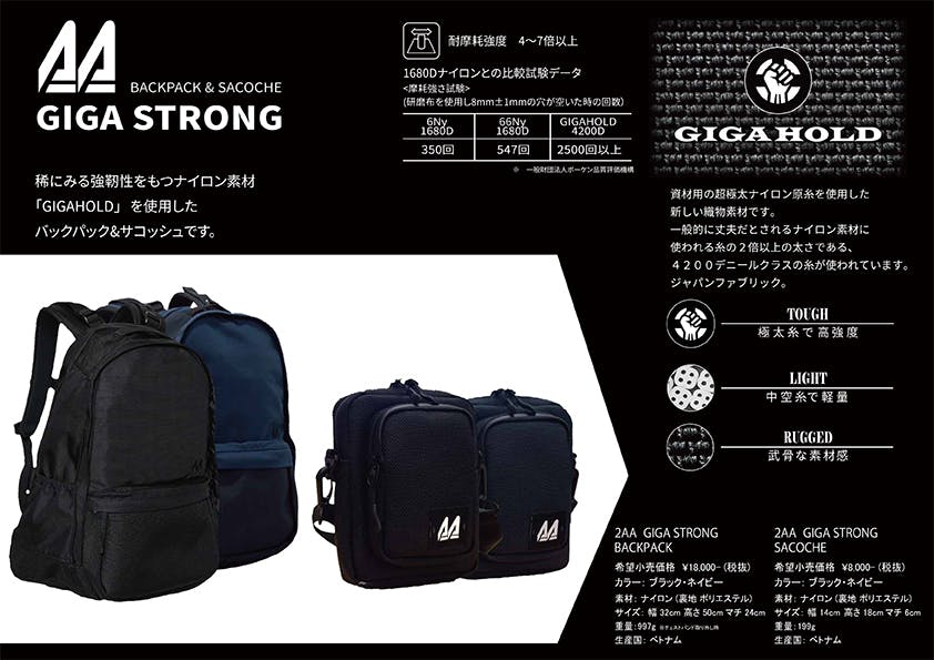 ▶GIGA STRONG BACKPACK 製品情報・仕様