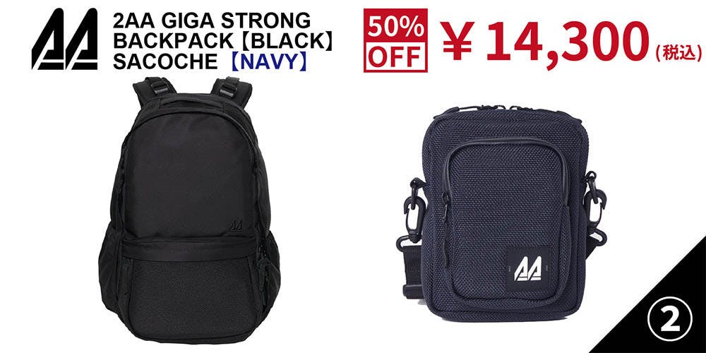 ② 2AA(ツーエー) GIGA STRONG BACKPACK 【BLACK】+ SACOCHE 【NAVY】通常価格 ¥28,600 ➡【50%OFF】¥14,300(税込)