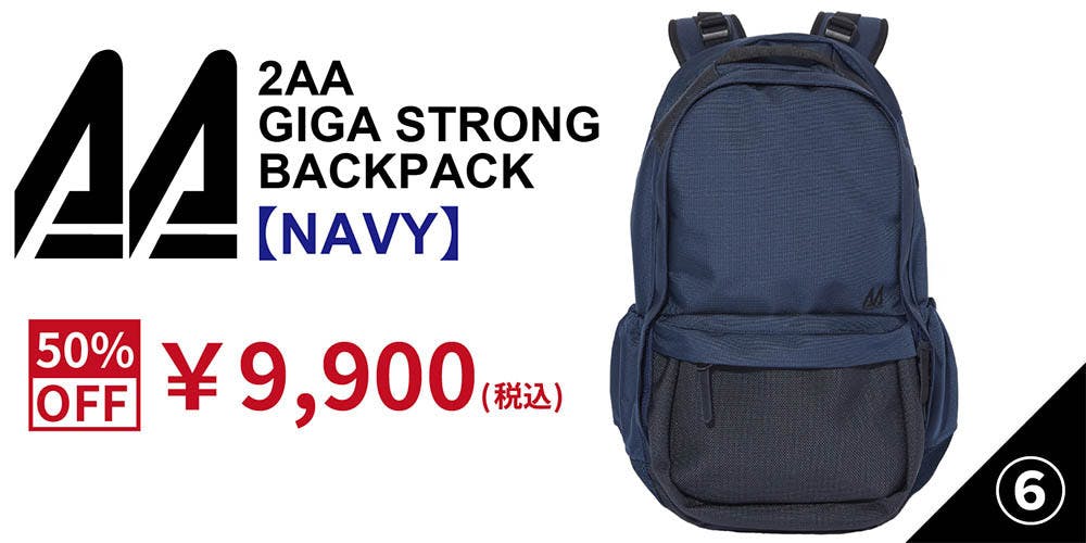 ⑥ 2AA(ツーエー) GIGA STRONG BACKPACK 【NAVY】通常価格 ¥19,800 ➡【50%OFF】¥9,900(税込)