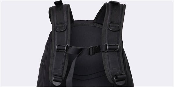 背面とストラップ裏には肌触りのよいネオプレンを使用。