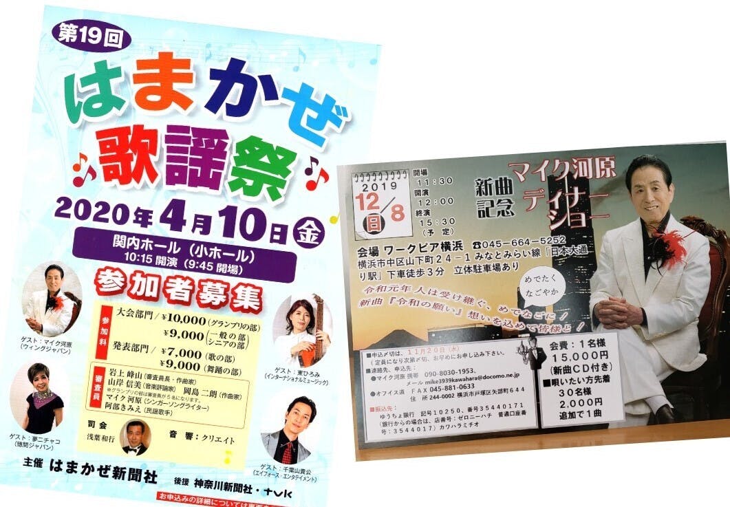この「横浜、相模原で歌謡祭を開催の「オフィス道」と歌手・マイク河原を助けて下さい!」をご覧いただき誠に有難うございました。