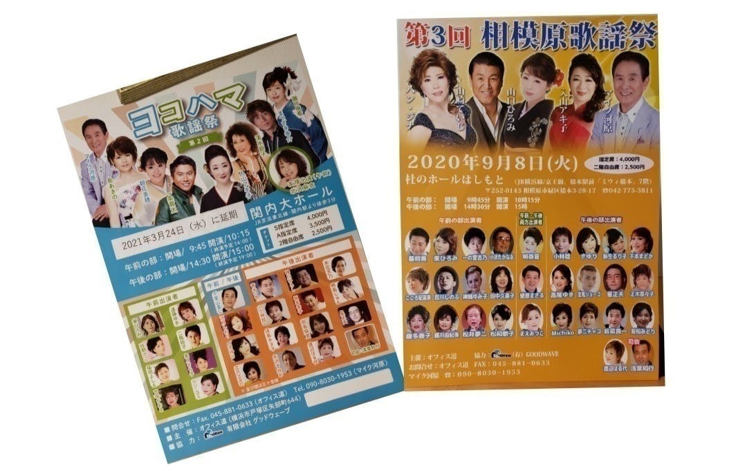 2. 6月26日開催予定だった「第2回ヨコハマ歌謡祭」は来年3月24日に延期して横浜市の「関内大ホール」で開催します。